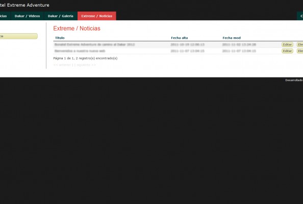 El sistema de gestión permite gestionar la información del portal, galerías fotográficas, galerías multimedia y noticias. Funciona como un centro de documentación multimedia para la gestión del equipo participante en el Dakar.