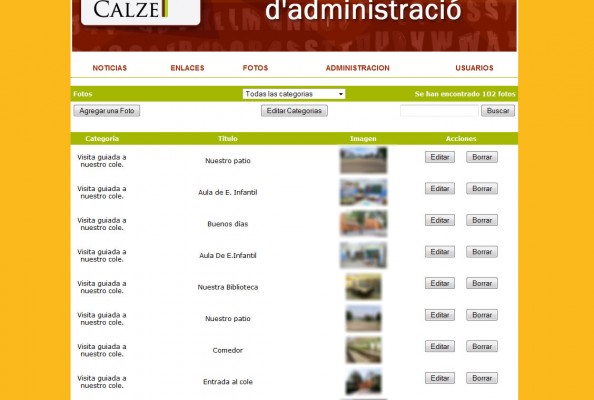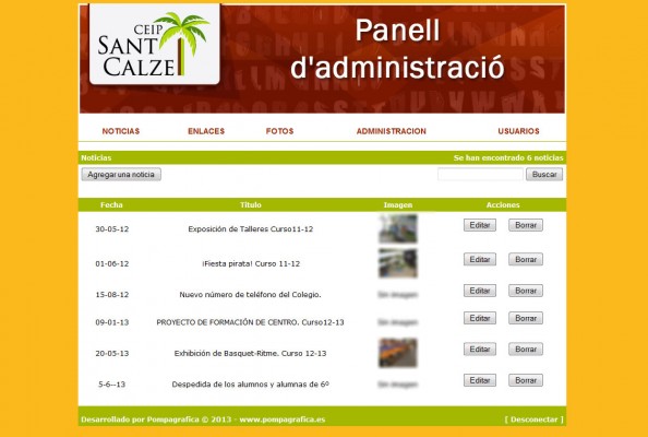El proyecto de gestión se compone de zonas donde editar las noticias de centro educativo, las galerías fotográficas y las parte administrativa del centro.